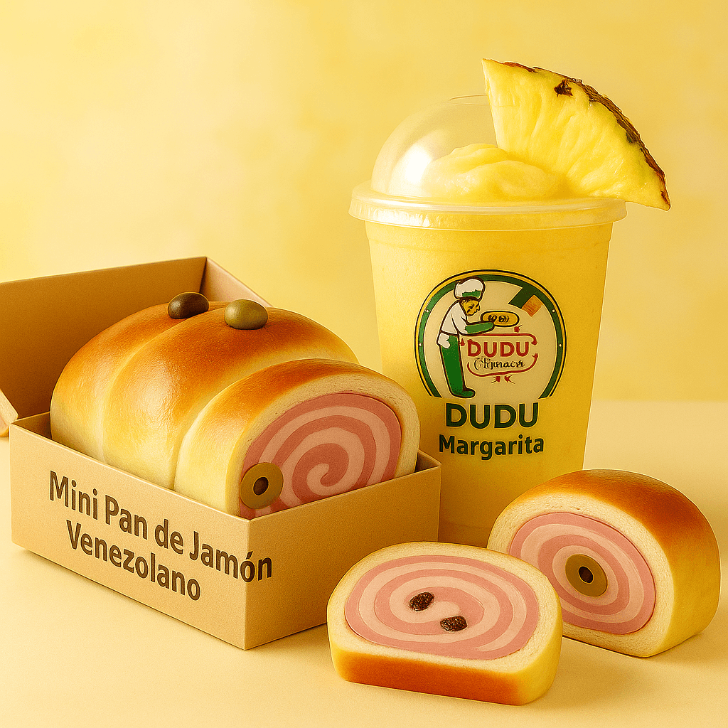 A taste of Venezuelan tradition — buttery rolls filled with ham, and our iconic Pan de Jamón, baked with love and authenticity.