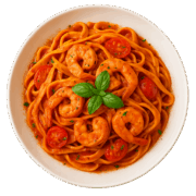 Pasta Pomodoro — Salsa cremosa de tomate y albahaca fresca servida sobre pasta artesanal, coronada con queso parmesano y decorada con hojas de albahaca. Un clásico italiano lleno de sabor y tradición.